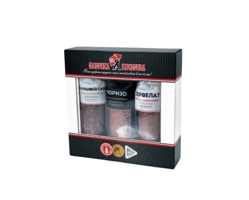 «Красная коробка» — благородные акценты и сбалансированный вкус сыровяленых колбас: «Ирландская» (85 г), «Итальянская» (90 г) и «Верона» (90 г);