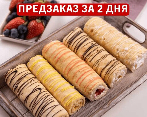 Набор рулетов: Клубничный — ароматный клубничный крем внутри. С персиком — мягкая начинка из персика. Ананасовый — тропический вкус, который дарит ощущение отдыха на пляже. Апельсиновый — освежающая цитрусовая начинка. С вареной сгущенкой — плотный карамельный вкус. В упаковке 5 шт. Хранить при температуре 2-4 ℃. Срок годности 120 часов. Энергетическая ценность(на 100 г. продукта): Белки 4,2 г, Жиры 8,4 г, Углеводы 38,2 г, Калории 252 ккал