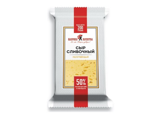 Сыр порционированный «Сливочный» полутвердый 50% Основные ингредиенты: молоко пастеризованное, бактериальная закваска, молокосвертывающий ферментный препарат животного происхождения, соль. Упаковано в защитной газовой среде. Пищевая ценность на 100 г. продукта (среднее значение) Белок – 24,6 г.; Жир – 28,2 г.; Калорийность: 1462 кДж/352 ккал. Хранить: при температуре от 2°С до 6°С и относительной влажности воздуха 70%-80%- 120 суток. После вскрытия упаковки хранить при температуре 2-4°С