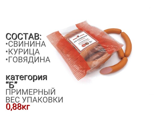 Отличное решение для сытного завтрака, обеда, ужина или перекусав течение дня. Сосиски из мяса кур от торговой марки Фабрика Качества имеют безупречный вкус и нежный аромат натуральных пряностей. Благодаря молоку в состве продукт обладает сочностью и нежностью. Энергетическая ценность (на 100 г. продукта) Белок – 9,0 г.; Жир – 12,0 г.; Калорийность: 140ккал\600кДж. Условия хранения Хранить при температуре от 0°С до 6°С; годен: не более 20 суток.