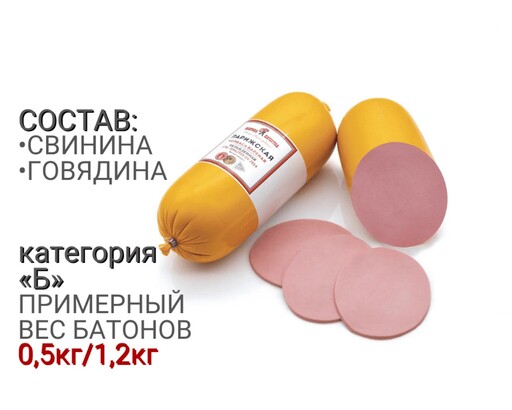 Высококачественная, вкусная колбаса. В ее рецептуру входят: свинина, говядина, яйца.Красивый срез изделию придают нарезанные некрупными кубиками говядина и шпик. Энергетическая ценность(на 100 г. продукта)Белок – 11,0 г.; Жир – 11,0 г.; Калорийность: 140ккал\600кДж. Хранить при температуре от 0°С до 6°С; годен: не более 40 суток в полиамидной оболочке; после нарушения целостности колбасной оболочки - не более 72 часов в пределах общего срока годности продукции при температуре от 0°С до 6°С и относительной влажности воздуха не выше 75%.