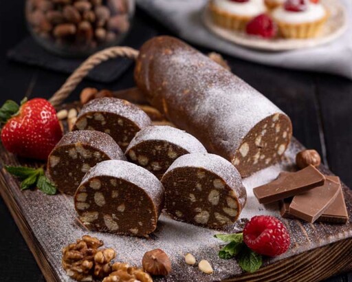 Шоколадная колбаска из сахарного печенья со сгущенкой и нежным оттенком какао. Мягкий богатый и насыщенный вкус. Какао добавляет печенью глубину и многослойность вкуса. Сладость, которой доверяют поколения! Хранить при температуре 18 ± 5 ℃. Срок годности 30 суток. Энергетическая ценность(на 100 г. продукта): Белки 7 г, Жиры 18 г, Углеводы 84г, Калории 520