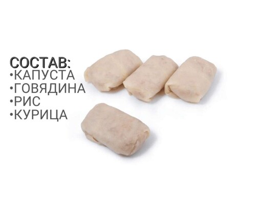 Начинка из курицы, шпика и риса. Натуральные пряности: перец чёрный, кориандр, перец белый, чеснок. Энергетическая ценность (на 100 г. продукта) Белок – 6,5 г.; Жир – 6,5 г.; Углеводы: 5,5 г.; Калорийность: 110 ккал/450 кДж. Хранить при температуре не выше минус 18°С - не более 6 месяцев. Способ приготовления: разморозить, тушить в соусе (можно без соуса) до готовности.