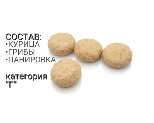 Полуфабрикат замороженный, рубленый, фаршированный. Мясо цыплят бройлеров, кожа цыплят бройлеров, мясо цыплят бройлеров механической обвалки, лук репчатый, вода, соль, перец молотый. Хранить при температуре не выше минус 18 ℃. Срок годности 6 месяцев.