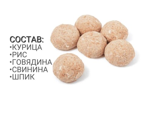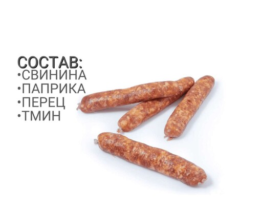 Состав — говядина, вода питьевая, свинина, лук репчатый, соль поваренная пищевая, специи и экстракты специй (перец черный молотый).Пищевая ценность — Белок 9,0 г, Жир 13,0 г, Углеводы 1,0 г. Энергетическая ценность, ккал/ кДж 160/672. Хранить при температуре хранения не выше минус 18С не более 90 суток. Продукт не подлежит повторной заморозке!
