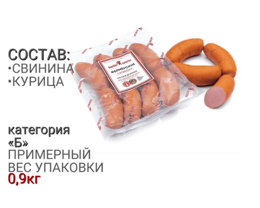 Энергетическая ценность: (на 100 г. продукта) Белок – 9,0 г.; Жир – 18,0 г.; Калорийность: 200ккал/830кДж. Упаковка: натуральная. Хранить при температуре от 0°С до 6°С; годен: не более 20 суток, упакованный в модифицированной атмосфере; - после нарушения целостности упаковки в модифицированной атмосфере - не более 3 суток в пределах общего срока годности упакованной продукции при температуре от 0°С до 6°С и относительной влажности воздуха не выше 75%.