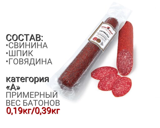 Изготавливается по ГОСТу из отборной говядины и свинины высшего сорта. Сочная, ароматная и насыщенная по вкусу. Процесс копчения и созревания длится не менее 30 дней, в результате чего колбаса теряет до 30% массы, приобретая плотную, упругую консистенцию и яркий аромат копчения. Идеальна для мясных нарезок, бутербродов и других блюд. Высокое качество ингредиентов и производства по ГОСТу гарантируют отменный вкус! Энергетическая ценность (на 100 г. продукта) Белок – 18,0 г.; Жир – 57,0 г.; Калорийность: 585ккал/2250кДж. Хранить при температуре от 0°С до 12°С; годен: не более 4 месяцев, упакованный под вакуумом; после нарушения целостности вакуумной упаковки - не более 3 месяцев в пределах общего срока годности продукции при температуре от 0°С до 12°С и относительной влажности воздуха 75%-78%; после нарушения целостности колбасной оболочки-не более 5 суток в пределах общего срока годности продукции при температуре от 0°С до 12°С и относительной влажности воздуха 75%-78%.